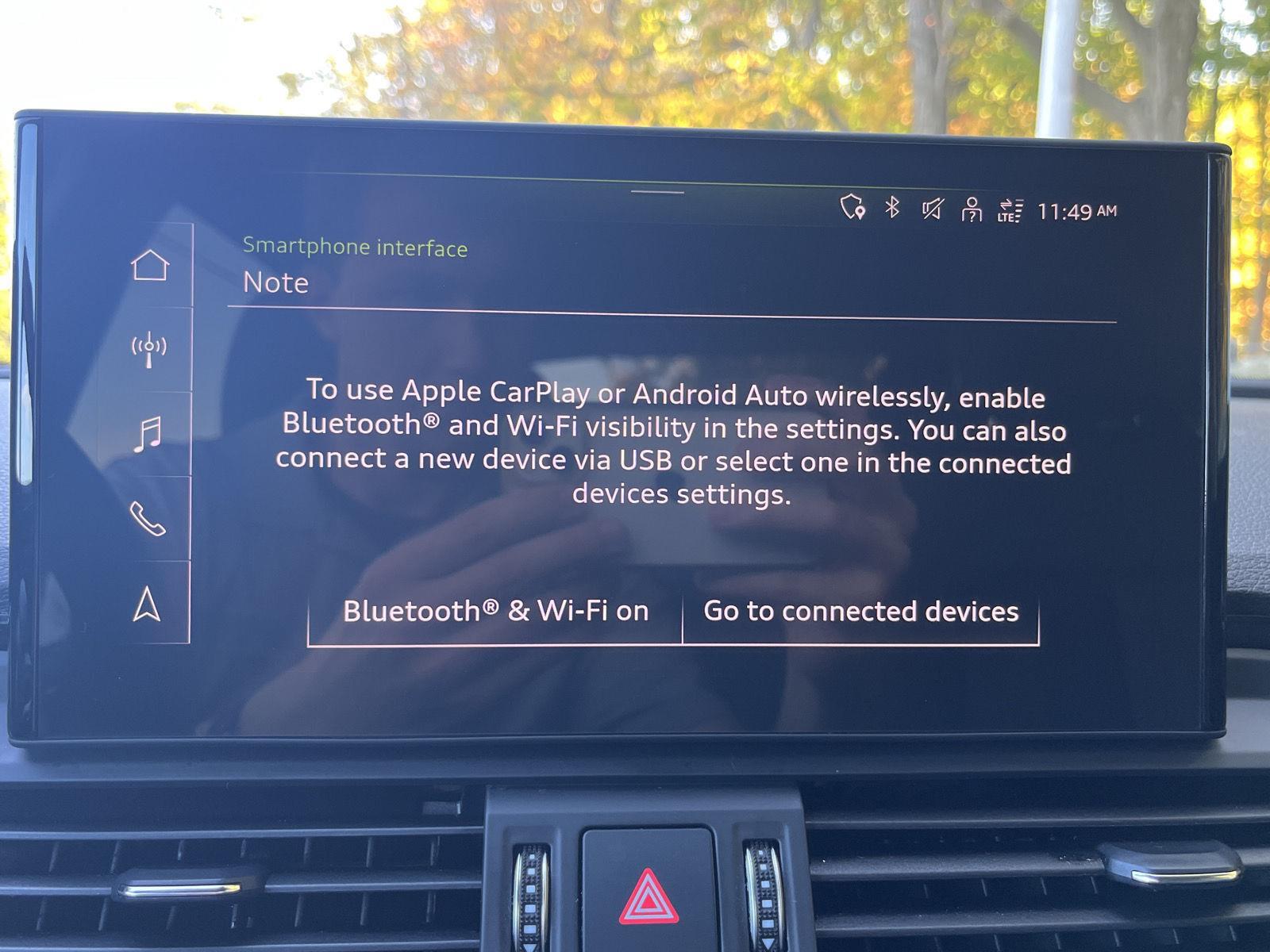 - Audi smartphone interface (Apple CarPlay/Android Auto) smart device wireless mirroring